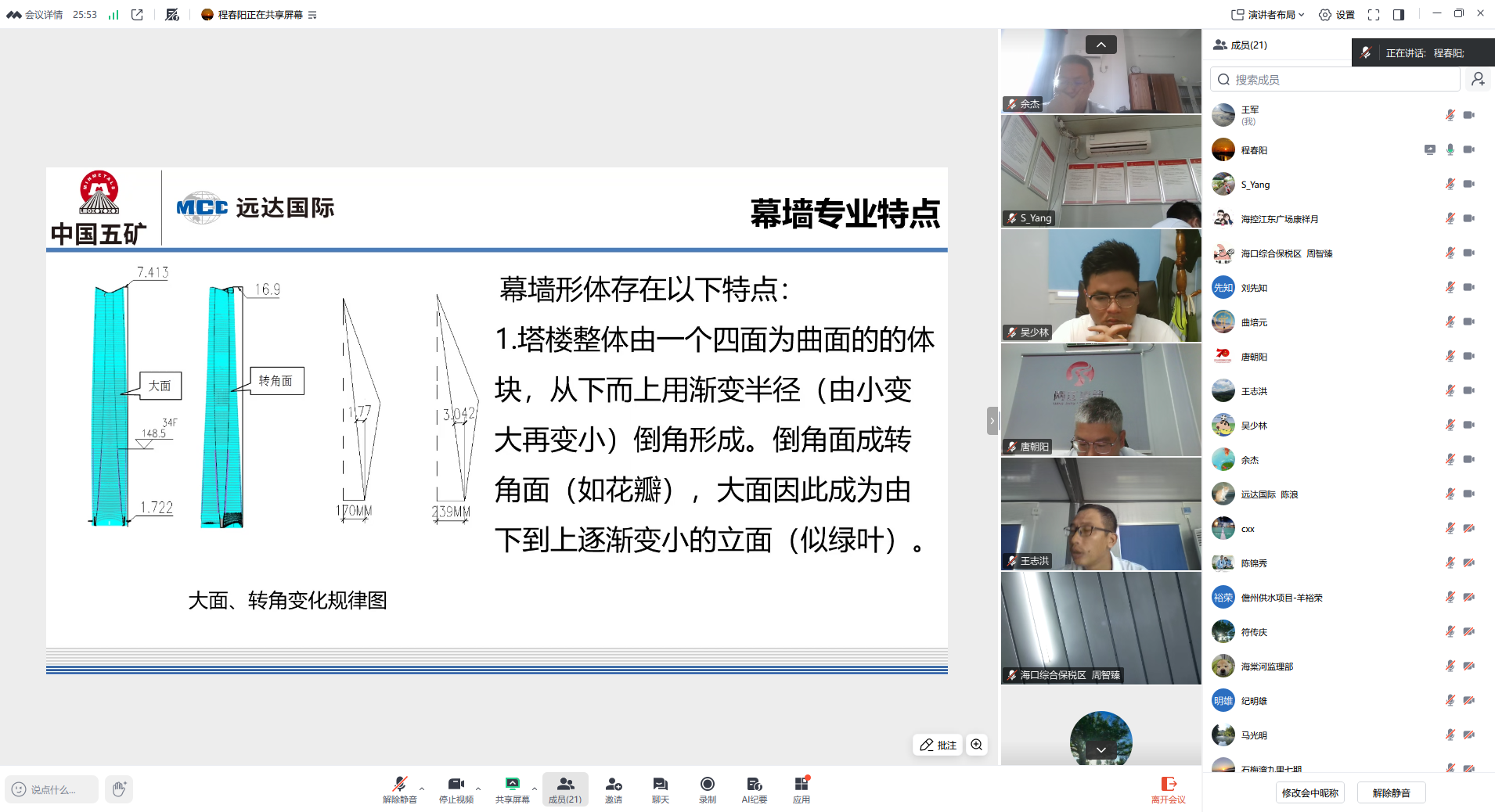 本次培训聚焦幕墙工程的设计要点、材料选型、施工工艺、质量控制及常见问题解决方案等核心内容深入展开探讨。培训紧密结合海南地区高温、高湿、多台风的气候特点,重点解析了抗风压性能、水密性、气密性等关键技术指标的把控方法。同时,以海南中心项目幕墙工程为实例,系统剖析了施工中的重难点及应对策略。互动环节中,参训人员针对实际工作中遇到的玻璃幕墙安装精度控制、防渗漏处理等问题踊跃提问,培训讲师逐一给予专业解答,现场讨论氛围热烈。
